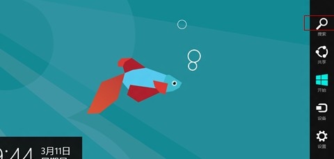 1、鼠標(biāo)移至桌面右下角,找到放大鏡圖標(biāo)的“搜索”(鼠標(biāo)左鍵點(diǎn)擊搜索)。圖(8)