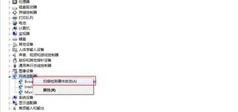 打開設(shè)備管理器,找到需要掃描檢測(cè)的硬件位置,選擇需要掃描更改的硬件,選中點(diǎn)擊鼠標(biāo)右鍵,選擇“掃描檢測(cè)硬件改動(dòng)(A)”。如圖(13)