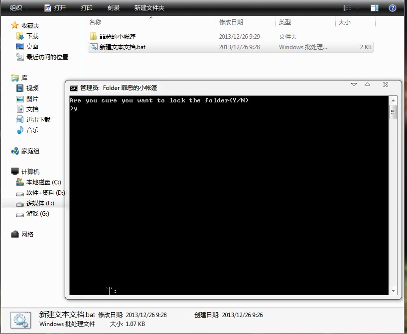 第三步,把TXT文本格式改成bat格式,運行,就會出現一個叫“罪惡的小帳篷”的文件夾。