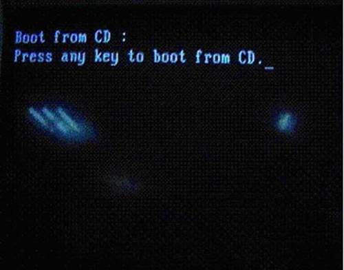 2. 選擇光驅,幾秒后,屏幕上會出現“Press any key to boot from cd…”的字樣,此時需要按下鍵盤上的任意鍵以繼續光驅引導。如下圖所示: