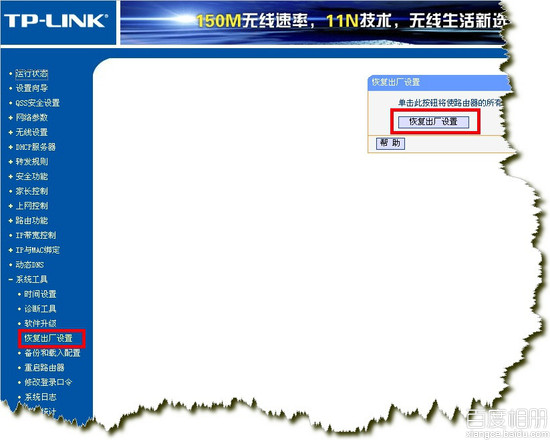 2 、進(jìn)入路由器頁面 找到恢復(fù)出廠設(shè)置 路由器恢復(fù)出廠 如圖所示