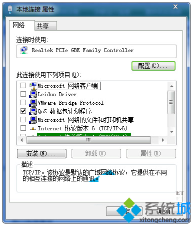3、接著在網(wǎng)絡(luò)選項(xiàng)卡下“此連接使用下列選項(xiàng)”處的勾取消掉,僅保留“QOS數(shù)據(jù)包計(jì)劃程序”項(xiàng)。然后再點(diǎn)擊確定按鈕。
