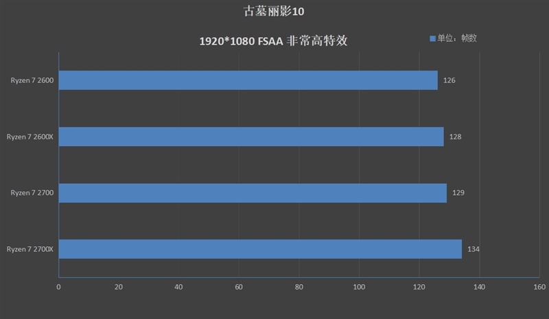 其實對于目前絕大部分單機游戲,CPU并非瓶頸。在《GTA 》V 和《文明6》中,高主頻的CPU略占優勢。《最終幻想15》中四款CPU成績基本上相同,《古墓麗影10》中Ryzen 7 2700X領先其他CPU5~8幀。