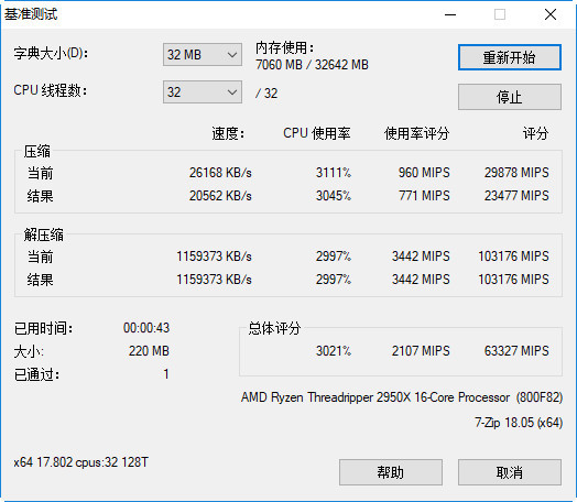 6、7-ZIP 18.05基準測試:2950X碾壓競品