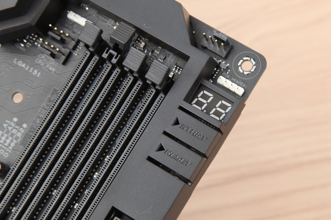 在DIMM接口的右上角,M11F主板配備有Q-LED多彩診斷燈,可通過其顯示的代碼快速判定電腦出現(xiàn)的問題,方便排查修復(fù)。另外被裝甲覆蓋的關(guān)機(jī)和重啟按鍵也方便裸平臺用戶的日常使用。