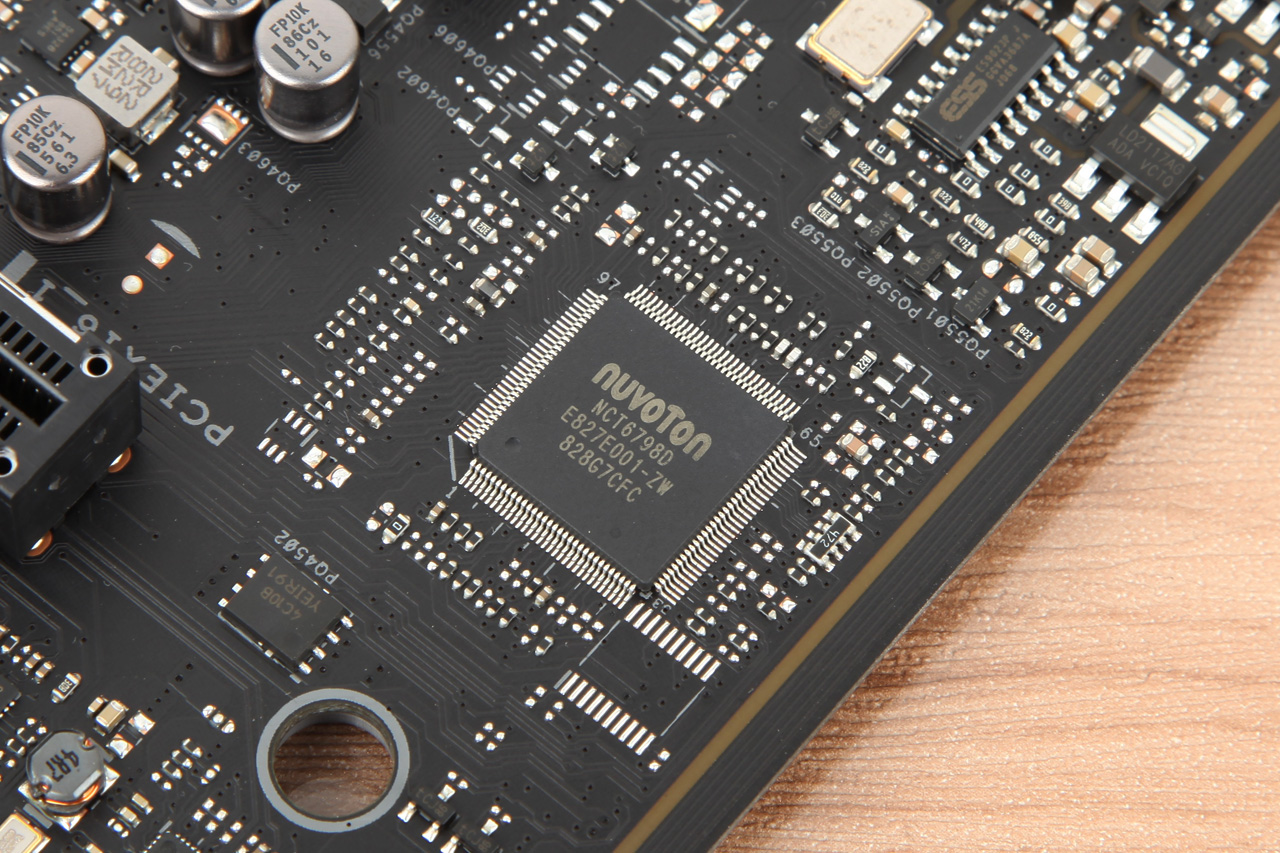 PCIe接口左側(cè)的黑色芯片則是I/O面板芯片,來自NUVOTON,型號為NCT6798D。