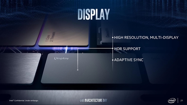 12月12日,Intel在“架構(gòu)日”(Architecture Day)的技術(shù)溝通會(huì)上,除了高性能和低功耗的未來(lái)六代CPU微架構(gòu),Intel GPU圖形方面也放出諸多猛料,其中核芯顯卡將進(jìn)化到第11代,獨(dú)立顯卡則重申會(huì)在2020年發(fā)布。Intel六代酷睿(Skylake)開始引入第9代核顯架構(gòu),七代酷睿(Kaby Lake)開始稱之為第9.5代核顯架構(gòu),但接下來(lái)不是第10代,將直接跨越到第11代。