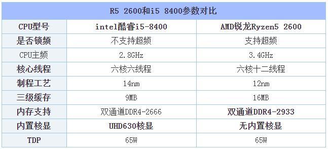 老規矩,首先我們帶來的是i5 8400與Ryzen5 2600的參數對比,具體規格如下表格。
