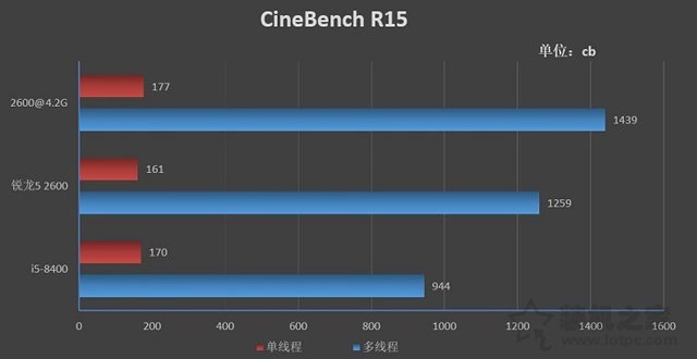 R5 2600和i5 8400在默認頻率對比,單核性能情況下,i5 8400相比R5 2600略強一些,不過在多核多線程方面,R5 2600明顯領先。而在R5 2600超頻的情況下,單核性能普通能反超i5 8400,兩者性能各有千秋。