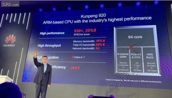華為表示鯤鵬920是目前業(yè)界最高性能ARM-based處理器。