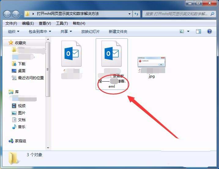1、將mht網頁文件的擴展名更改為eml,如下圖所示。