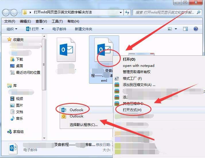 2、在文件上右擊,選擇打開方式中的Outlook選項。