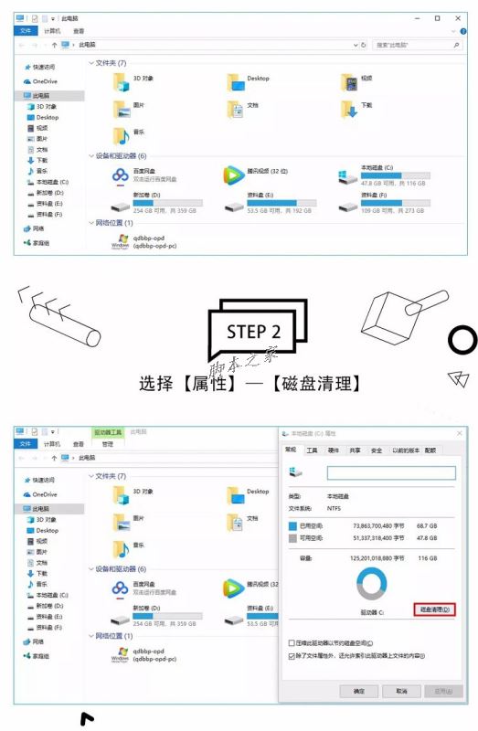 Windows系統內置了磁盤清理功能,可以非常方便的幫助我們清理磁盤,操作起來更是非常簡單,只要點擊幾下鼠標即可,以下是技能圖解。