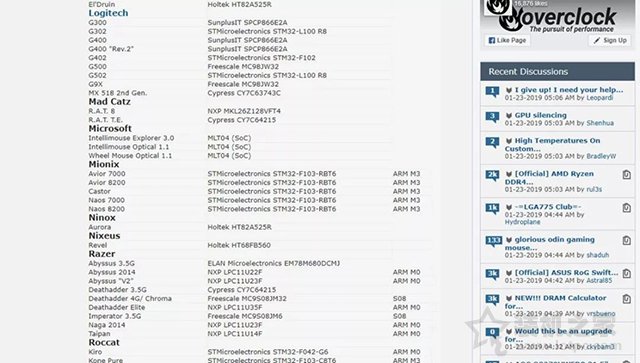 常用的品牌有意法半導體、SoNiX、Holtek、Freescale、NXP、SunplusIT、Cypress等等,他們也都是很不常見的品牌。在overclock上有一個“GamingMouse MCU List”的帖子,絕大多數的鼠標用了什么MCU一看便知。