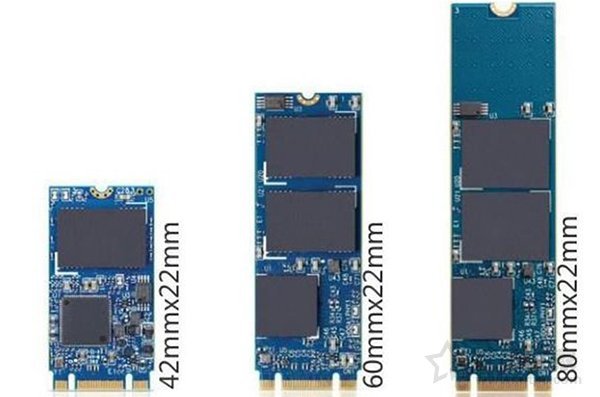 M.2除了通道不同之外,還有尺寸的區(qū)別,M.2的接口寬度一致,不過長度有2242、2260和2280三種,PCB越長說明顆粒越多,容量則越大,主要看主板M.2支持什么規(guī)格,目前常用規(guī)格是2280。