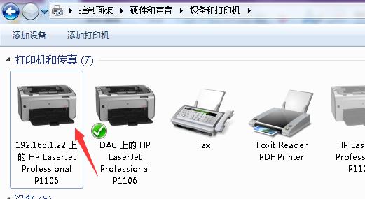 等待驅動程序安裝完成之后,在客戶機上的設備與打印機視圖中,可以看到打印機已經添加上了,然后我們鼠標右鍵設置為默認打印機就可以了。