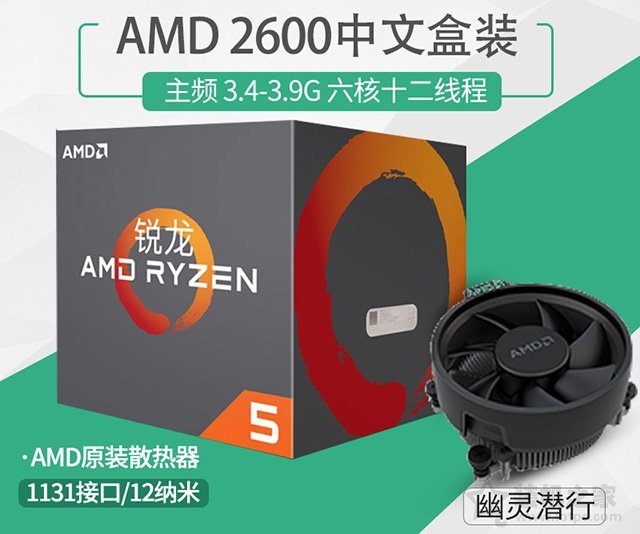 CPU方面,我們選用了性價比較高的主流CPU型號--AMD銳龍Ryzen 5 2600,定位中高端主流級別,性價比秒殺競品intel酷睿i5-8400。這款Ryzen 5 2600處理器基于12納米制造工藝,基礎主頻大小為3.4GHz,睿頻頻率大小為3.9GHz,擁有9MB三級緩存,搭配最新的B450新平臺主板即可解鎖超頻,TDP熱功耗設計僅為65W,盒裝附送幽靈散熱器。
