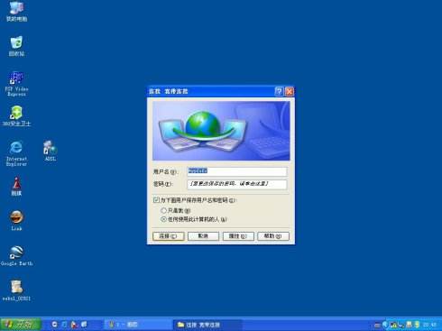 ⒊接著我們雙擊打開撥號(hào)連接,手動(dòng)輸入寬帶的賬戶名和密碼,然后勾選“為下面的用戶保存用戶名和密碼“的選項(xiàng),然后確定撥號(hào)。