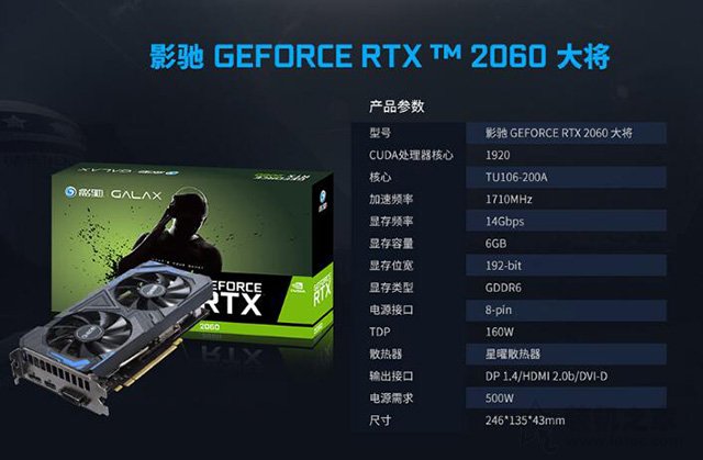 RTX2060的性能大致相當(dāng)于上一代GTX1070Ti,并有光線追蹤與DLSS技術(shù)加持,定位中高端主流級(jí)顯卡。影馳RTX2060 6G大將顯卡的核心采用Turing架構(gòu)的TU106-200A,內(nèi)建1920個(gè)流處理器,同時(shí)搭配192-bit位寬的6GB GDDR6顯存,顯存頻率達(dá)14000MHz,核心頻率達(dá)1710MHz。顯示接口方面,擁有3個(gè)接口,分別是1個(gè)DP接口、1個(gè)HDMI接口、1個(gè)DVI-D接口?;灸軌驖M足在1080P與2K分辨率下暢玩游戲,全新的RTX系列顯卡,還將實(shí)時(shí)光線追蹤、人工智能和可編程著色技術(shù)融于一體,可以稱為光追入門最香甜品。