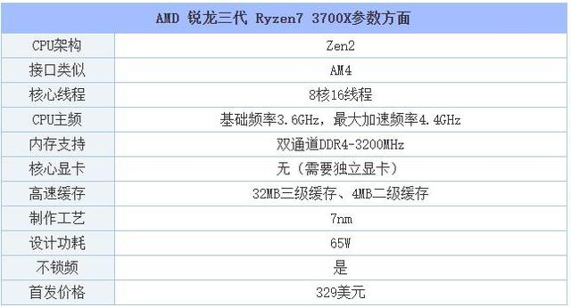 先睹為快,我們先來看下AMD銳龍Ryzen7 3700X處理器的參數(shù)方面,如下表格。