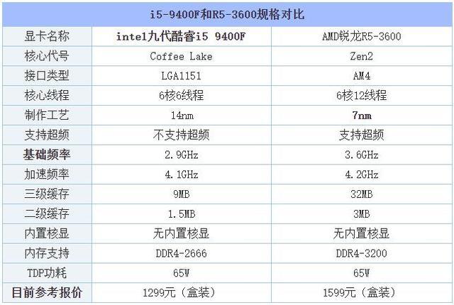 i5-9400F和R5 3600參數(shù)對(duì)比