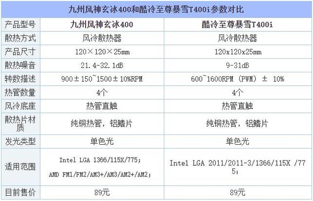 九州風神玄冰400和酷冷至尊暴雪T400i哪個好?