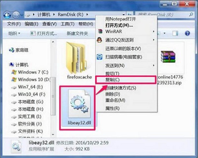 2、下載之后,解壓出來,然后將libeay32.dll文件放到C:\Windows\System32文件夾下。如圖所示: 注意:如果是64位的系統,則放到C:\Windows\syswow64文件夾之中。