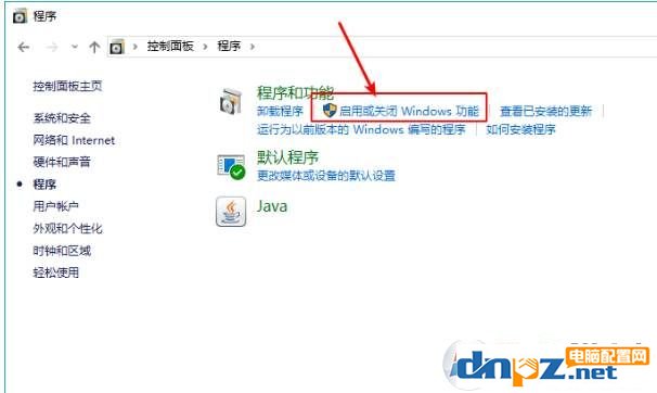 3、接下來再點擊啟用或關閉Windows功能選項,