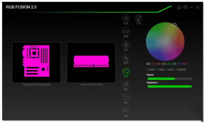 另外,本次測試平臺中的金士頓內存也支持支持RGB Fusion燈光控制系統,可以通過軟件設置為與主板聯動,實現統一的效果。