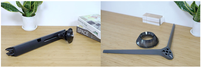 支架與主機的連接采用了四顆螺釘固定,使用工具擰緊后,再將氛圍燈罩安裝上,V形底座采用金屬材質打造,提供了快裝螺釘,手動就能輕松安裝緊固。