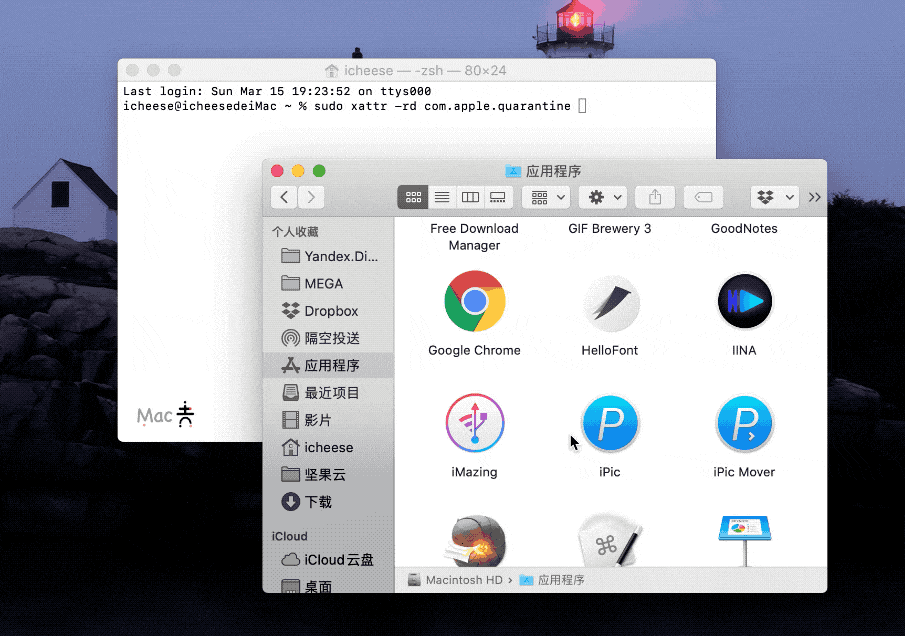 sudo xattr -rd com.apple.quarantine 空格 軟件的路徑