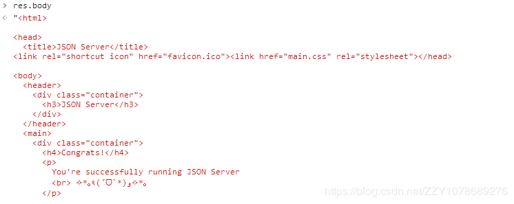 從這里,我們可以看到,我們所獲取的實際上返回的是一個頁面,我們是不能對頁面直接點出來數據然后再操作的。即我們如果在響應結果中使用res.body,其返回的結果為:
