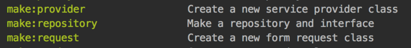 個(gè)人研究了下Artisan命令行,是可以的。經(jīng)過(guò)開發(fā)后,結(jié)果是輸入自定義指令php artisan make:repository PostRepository --model=Post(這個(gè)option可要可不要)