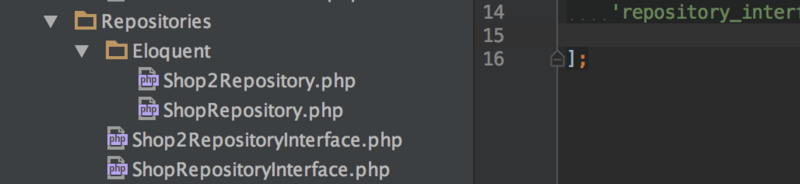 備注:個(gè)人平時(shí)在寫Repository代碼時(shí)會(huì)這樣寫,如先寫上ShopRepositoryInterface并定義好接口方法如all()