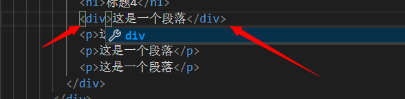 5、此時打開html文件,修改前面的標簽名就可以看到后面的標簽名自動補全了。