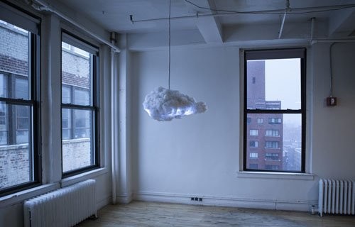 如果動手能力強,自己可以償試做一個,The Cloud云采用低敏合成纖維棉制作(感覺和枕頭芯差不多),燈里安裝了不同種類閃電顏色的LED燈泡,還有揚聲器(只能幫到這兒了)。
