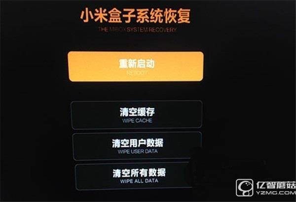 3.插上小米小盒子電源。等待小米圖標(biāo)出現(xiàn)后,則出現(xiàn)Recovery模式菜單。