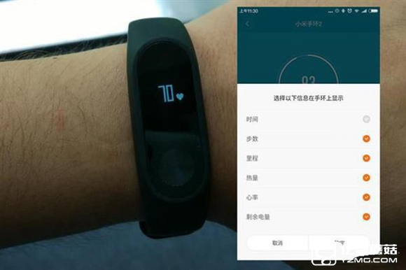 相比第一代產品來說,小米手環2加入了一塊OLED顯示屏,可顯示時間、心率、步數、卡路里等信息。