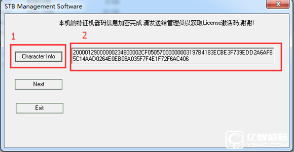 三、解壓附件中的stb 7.5.8,運行“StbCfgTool_Crack.exe”,按下圖,先點下1的按鈕,獲取注冊碼,接著將2中的所有字符全部復制,ctrl+c,然后選擇Next;