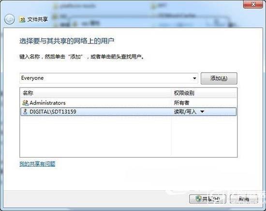 1、在任意一個位置里面建立一個文件夾,右鍵點擊選擇共享,在下拉框中選擇Everyone點擊添加,然后在接下來的窗口中點擊完成即可;