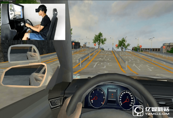 廣州的盜夢(mèng)科技最近推出了 VR 學(xué)車模擬器,駕駛座椅參照捷達(dá)車制作,顯示使用 Oculus CV1 頭顯,底部安裝 6 自由度運(yùn)動(dòng)平臺(tái)模擬車的運(yùn)動(dòng),基于航拍,使用 UE4 引擎 1:1 定制廣州岑村考場(chǎng)的三維虛擬環(huán)境,可以模擬科目二和科目三的訓(xùn)練。模擬科目三時(shí),場(chǎng)景里有 AI 系統(tǒng),模擬路上行駛的其它車輛,這些 AI 控制的車輛按照交通規(guī)則在環(huán)境中自己行駛。除了岑村考場(chǎng),他們也支持為其它考場(chǎng)定制虛擬環(huán)境。