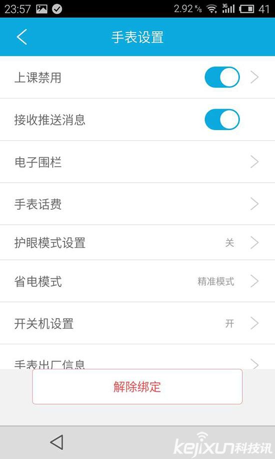 手表設置:對孩子管理的重要功能。其中有上課禁用功能,可以設置上課時間段,防止孩子上課玩智能手表;電子圍欄,可以設定家與學校的電子圍欄,當Kido智能手表離開這段區域時,將會推送給家長信息,方便對孩子的管理。護眼模式、省電模式、開關機設置都是對于孩子手表的管理,就不一一贅述了。