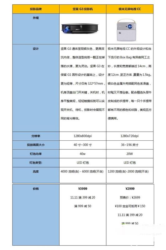 堅果G3和極米CC哪個好?智能投影儀全面對比測評