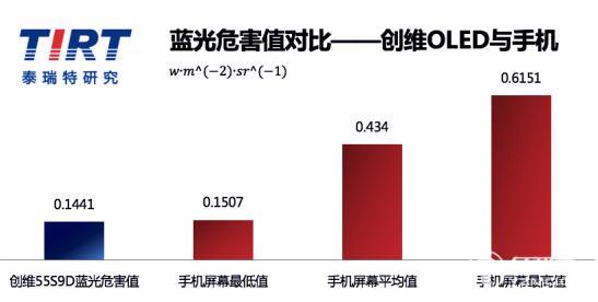 大數據分析顯示,4、5英寸手機屏幕藍光危害均值為0.434W•m-2•sr-1,而55英寸OLED電視藍光輻射量僅相當于這個數值的1/3。令人擔憂的是,泰瑞特大數據顯示手機屏幕藍光危害最高值達到了液晶電視的平均值,而手機使用時離眼睛更近,藍光能量更強,危害更為嚴重;OLED電視輻亮度值相當于手機最高值的1/4,更為安全可靠。