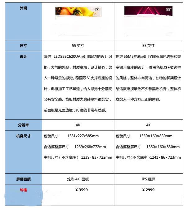海信電視和創(chuàng)維電視哪個好?55寸深度對比