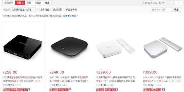 相比電視廠商和互聯網企業盒子品牌,有通信基因、做互聯網手機出身的榮耀品牌入局較晚,發展較快,在消費者心中已經形成較好的定位和口碑。在京東電視盒子品類下按照銷量排列,前四位小米和榮耀的盒子包攬。從評價量來看,榮耀盒子有42萬+,小米盒子有35萬+。