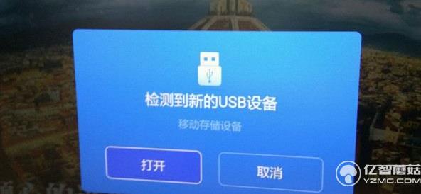 2、將U盤插入到小米盒子的USB接口,這時盒子會彈出窗口,點擊打開選項: