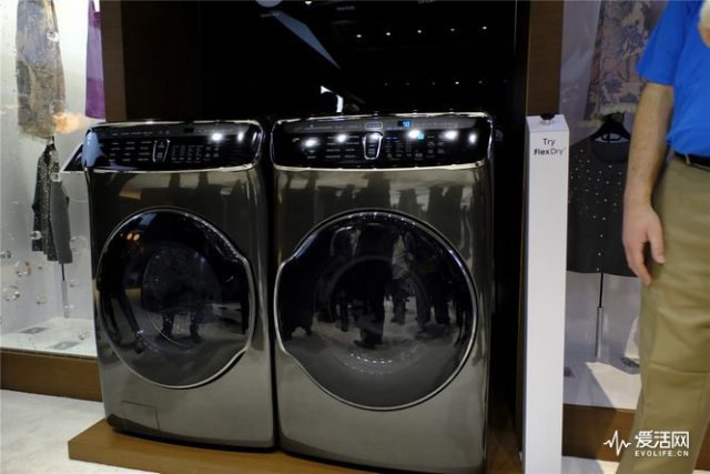 相比 AddWash 洗衣機這張熟臉,還是三星早在 CES 之前就發布的 FlexWash+FlexDry 洗衣系統更能引起我的興趣,FlexWash+FlexDry 洗衣系統是集四臺機器于一體的整合洗衣系統,包括 2 臺洗衣機和 2 臺烘干機,并且有 5 立方英寸和 1 立方英寸兩種大小區別。大型號用來清洗床單、大衣這類大件物品,小型號則是用來清洗貼身衣物,與之對應的也有相同大小的烘干機。