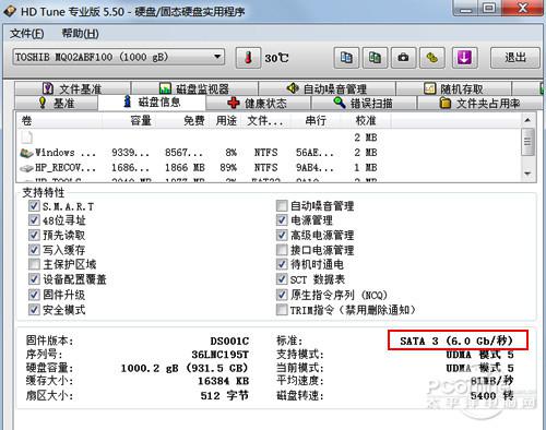 之前看有人說可以直接用‘魯大師’來查看接口類型,其實這種說法并不嚴謹。它所得出的測試結果,只是顯示你當前硬盤的接口類型,并非是主板本身的接口類型,不要混為一談。如果怕麻煩,懶得自己拆機,最簡單的辦法是通過‘HD Tune’軟件來查看。基本的信息搞定之后,繼續往下走。