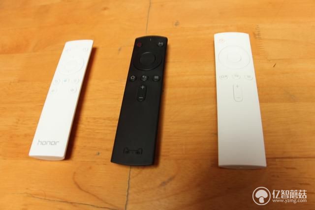 三款盒子的遙控器均支持藍牙操控,榮耀盒子pro配備獨立語音按鍵,而天貓魔盒將語音鍵和菜單鍵進行了合并,三款遙控器無論是造型還是手感都是很接近,但是榮耀盒子PRO的音量鍵是左右設置,這一點小編個人覺得有點不符合使用習慣啊,大家潛意識里音量鍵是上下鍵。